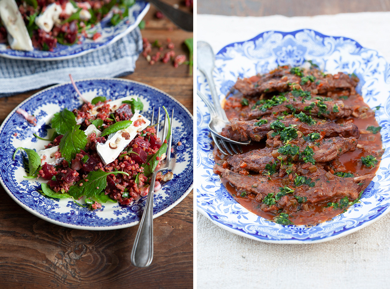 Een serie recepten met geitenkaas en vlees die ik maakte bij de serie De Oude Streek vind je op de pagina: