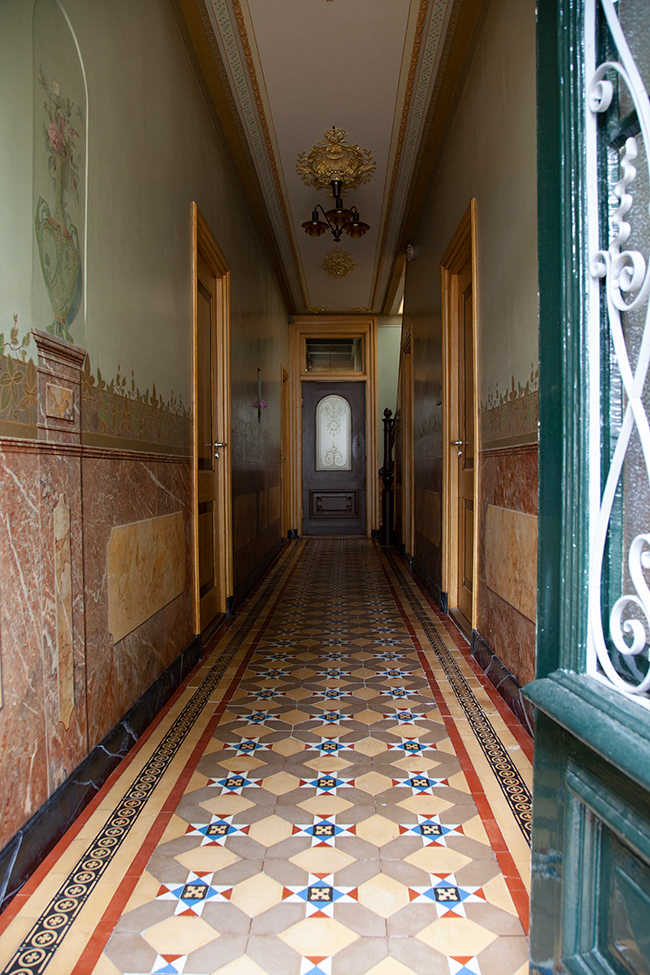 Het huis lieten ze onder architectuur compleet restaureren. "Onder de witgeschilderde muren van de gang kwamen prachtige originele schilderingen tevoorschijn, het bleek een echt pareltje wat we helemaal lieten restaureren. De vloertegels zijn origineel en komen uit Engeland. "Echt iets van aanzien in die tijd, status die hoorde bij een dokter." Ook andere ruimtes in het huis lieten ze terugbrengen in oorspronkelijke staat. Luiken voor de ramen werden gerestaureerd en in oude kleuren teruggebracht en oud behang, wat ze onder verschillende lagen op de muur vonden werd gereconstrueerd. "De restauratie van ons doktershuis duurde een jaar," vertelt Willem. Maar het resultaat mag er zijn, een prachtig statig huis teruggebracht in oude glorie.