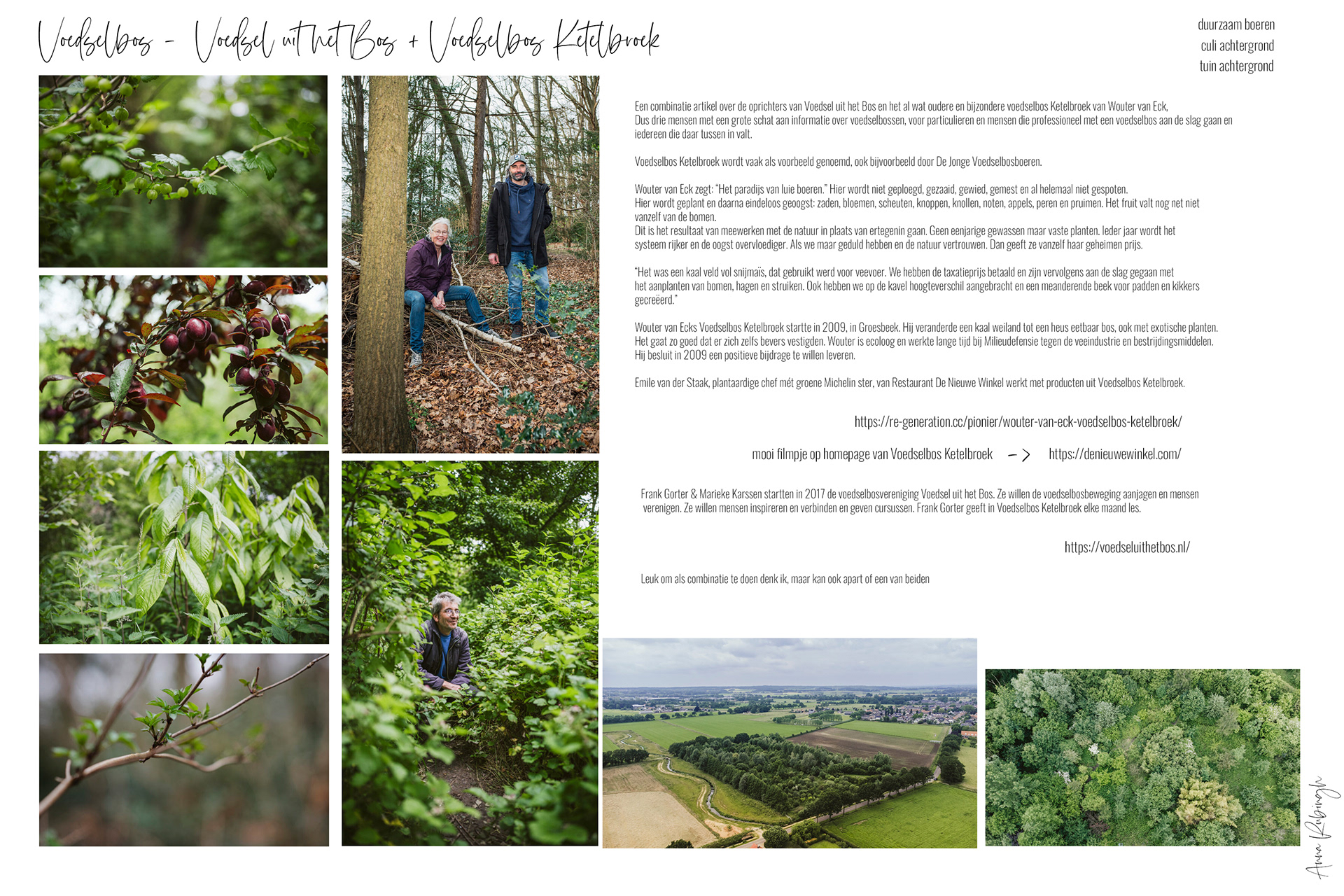 Voedselbos Ketelbroek wordt vaak als voorbeeld genoemd, ook bijvoorbeeld door De Jonge Voedselbosboeren.