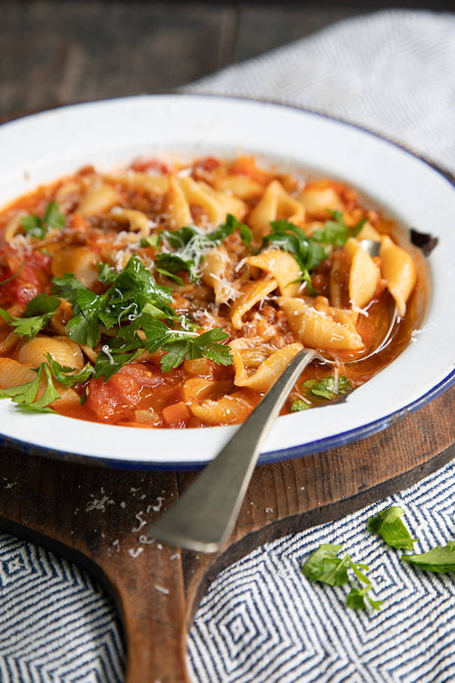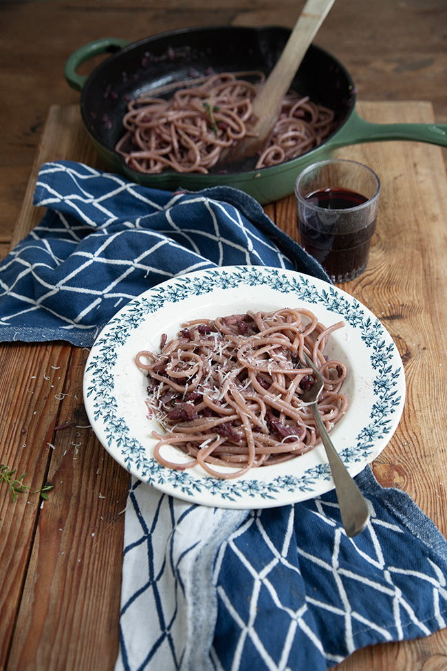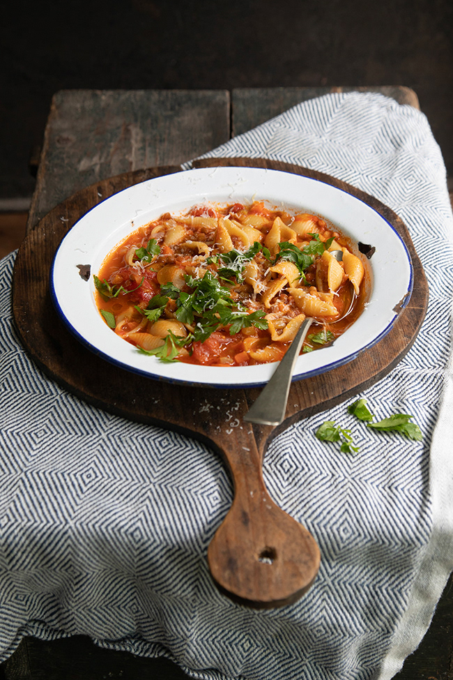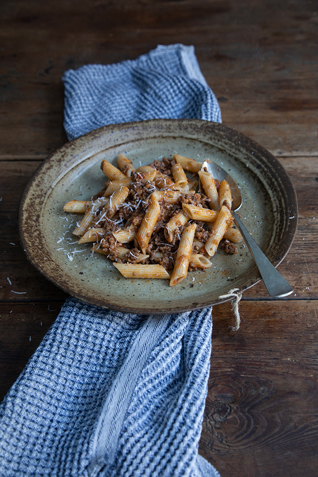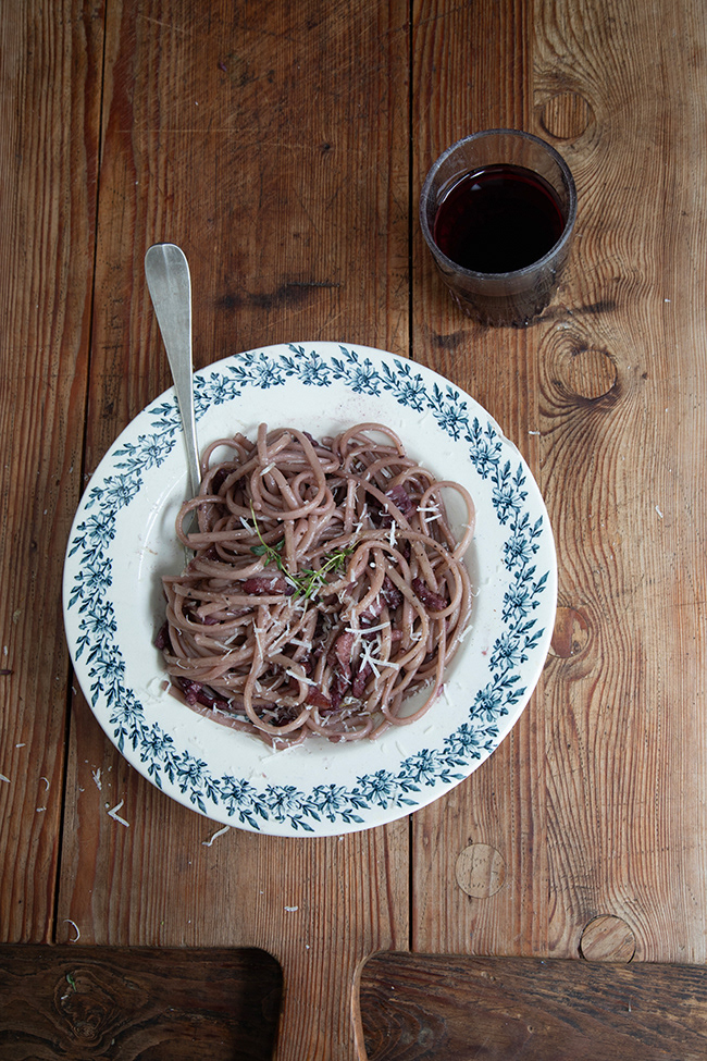 There is traditional Ragù alla Bolognese which, properly made, is a meat sauce, not a tomato sauce, served with penne. Pasta with lentils and a really good glug of olive oil is almost a cross between a sauce and a thick soup, and incredibly comforting. Spaghetti all’ubriaco – drunken spaghetti – is a traditional Tuscan pasta dish cooked with wine and, no worries, all the alcohol cooks out of the sauce.