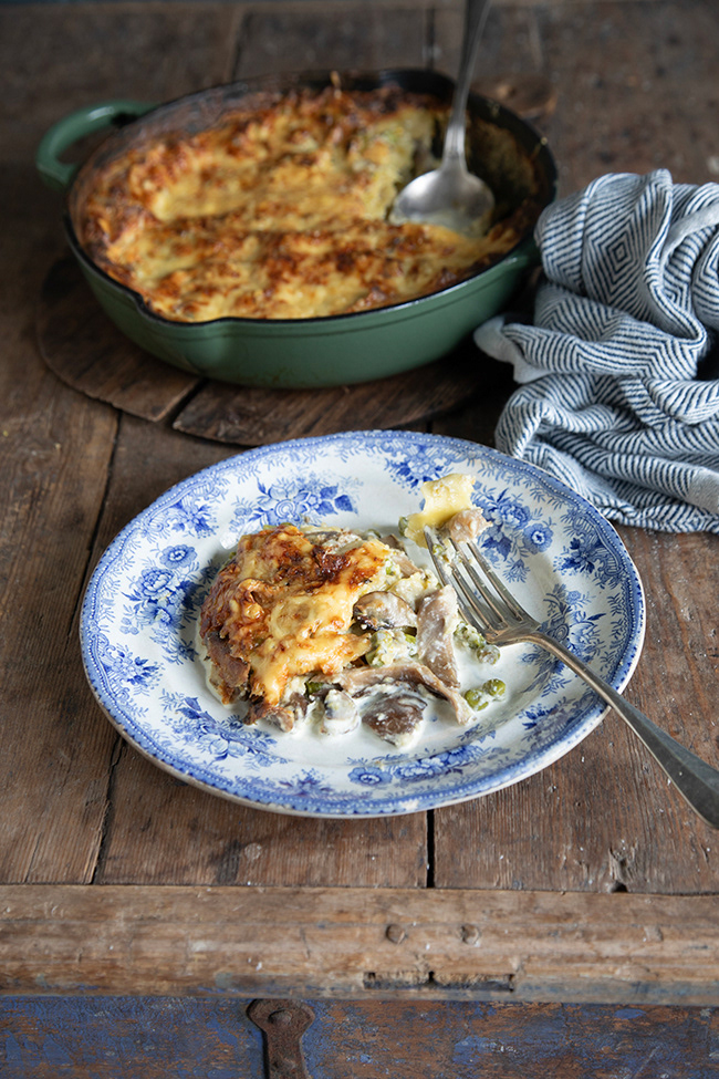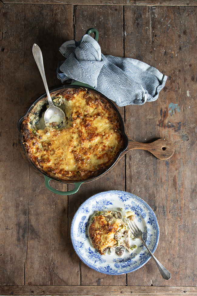 Lazy lasagna with creamy mushroom sauce